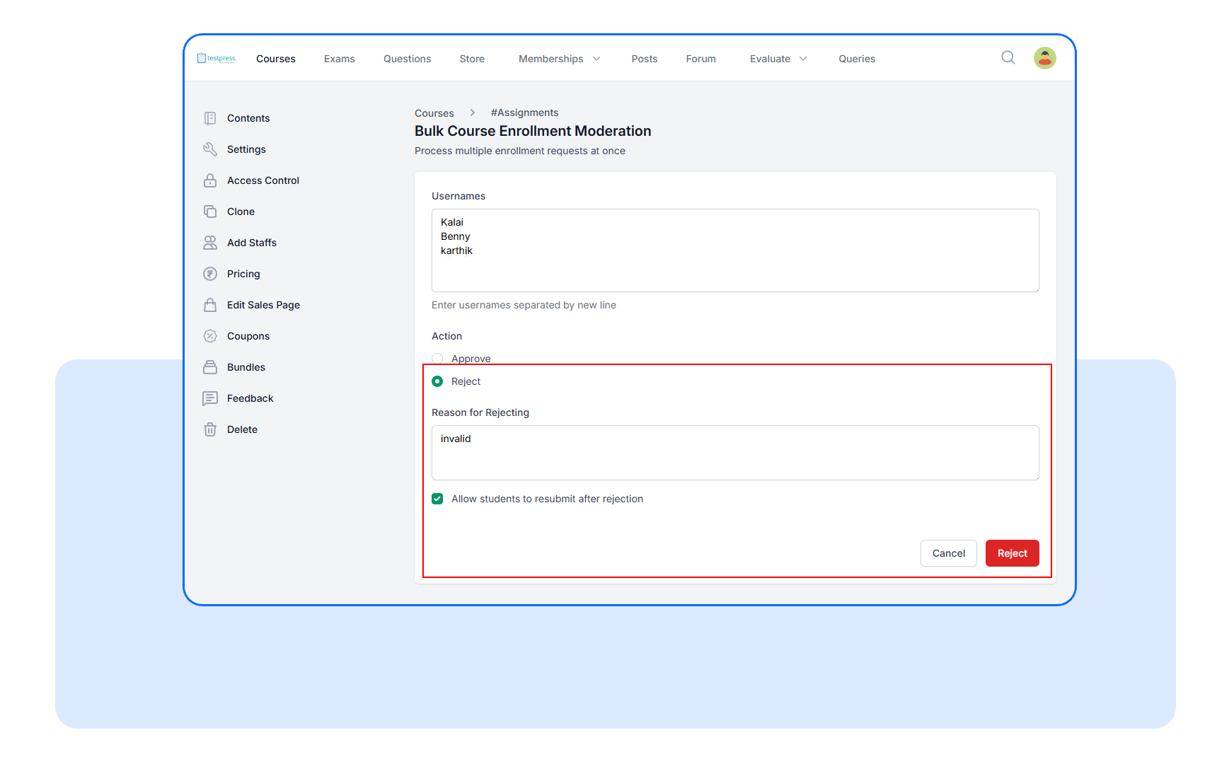 Start using Bulk Enrollment Operations from the course moderation view and process applications at the speed your team actually needs.